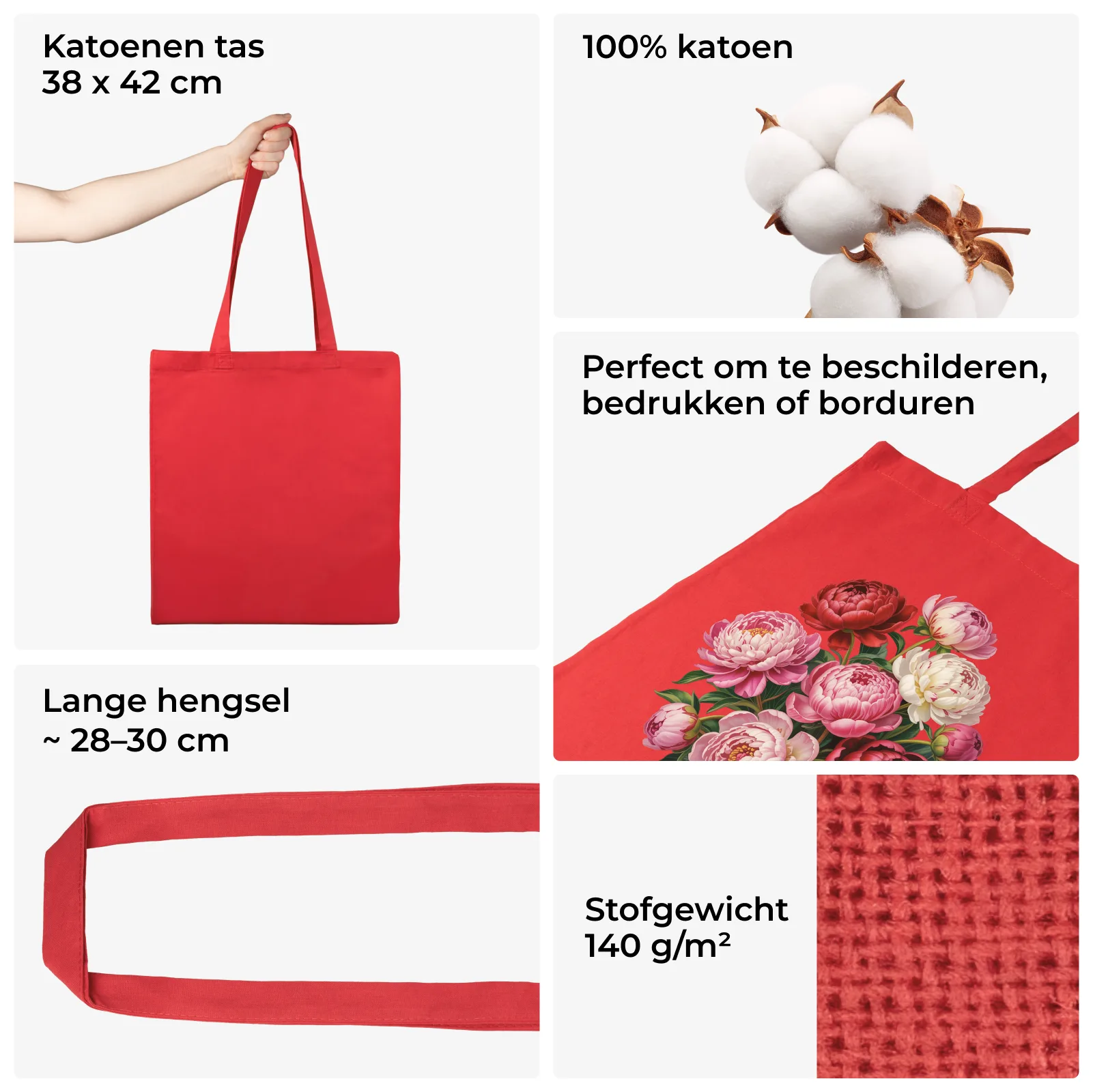 1 stuk Katoenen tas 38 x 42 cm met lange hengsels - rood