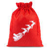 Bestel een unieke zak (1 per pak) in rode jute van 30 x 40 cm. Deze feestelijke geschenkverpakking is versierd met een appliqué in wit vilt waarop de slee van de Kerstman staat afgebeeld.