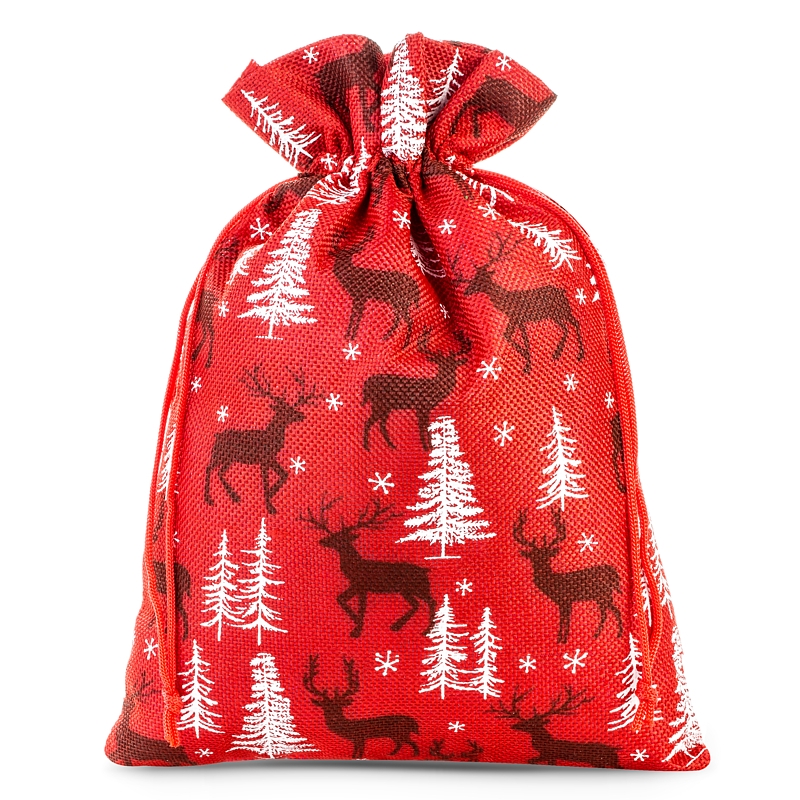 1 stuk Jute zak 30 x 40 cm - rood / rendier
