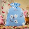 1 stuk Linnenlook zak met print 30 x 40 cm - natuurlijke kleur / blauwe bloemen