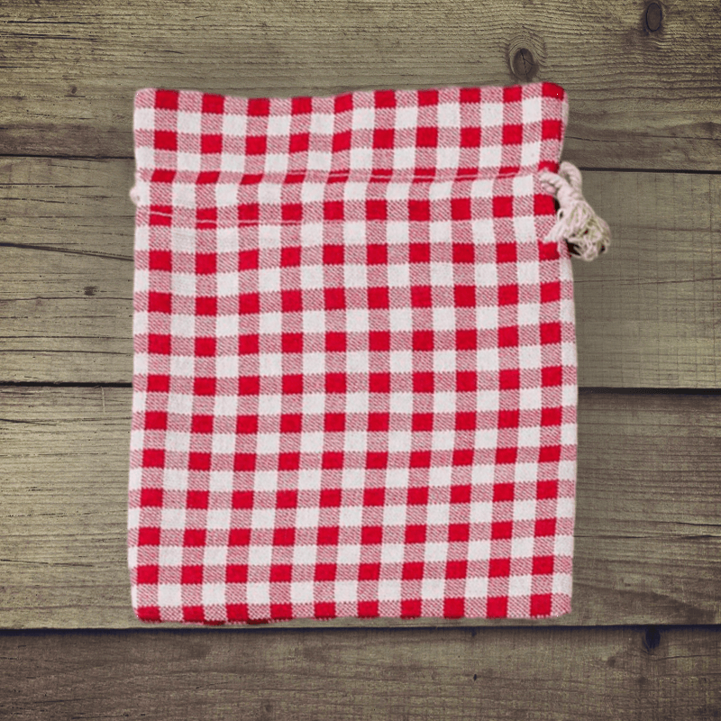 1 stuk Zakje à la linnen met print 15 x 20 cm - natuurlijk / rode trellis
