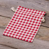 1 stuk Zakje à la linnen met print 15 x 20 cm - natuurlijk / rode trellis