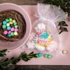 Wij bieden mooie paaszakjes van organza aan waarmee je de inhoud mooi kunt verpakken en tegelijkertijd kunt laten zien (organza is een materiaal dat zich onderscheidt door zijn grote transparantie). In de verpakking zitten 10 witte organza zakjes van 13 x 18 cm en versierd met een mooie opdruk in pastelkleuren - de opdruk toont een bloemen guirlande met een konijntje en de tekst "Vrolijk Pasen".