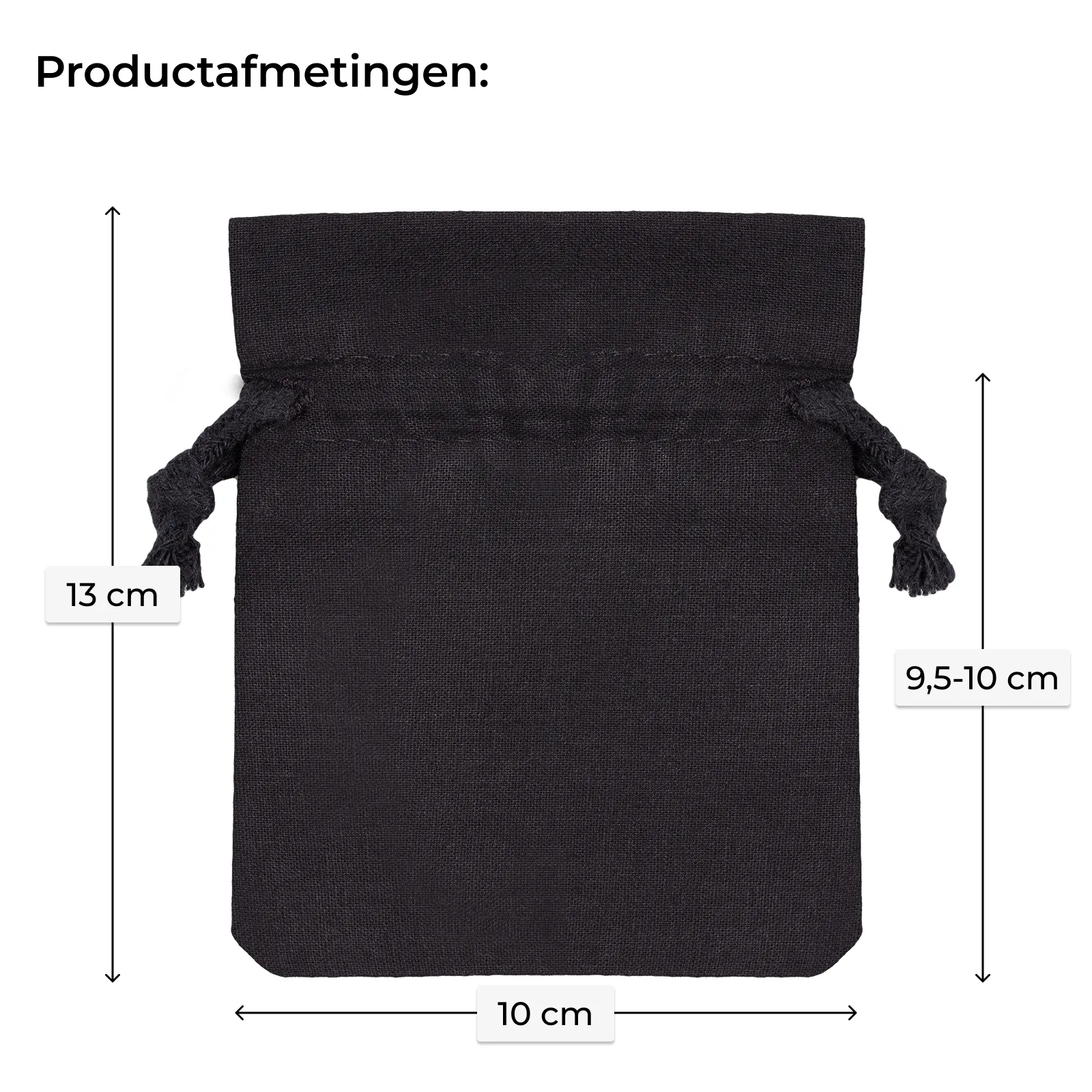 Kleine maar veelzijdige zakjes van elegant katoen in een zwart kleur in de maat 10 x 13 cm. Het gepresenteerde pakket bestaat uit 10 stuks, waardoor een eenmalige aanschaf van onze practische zakjes langer meegaat.