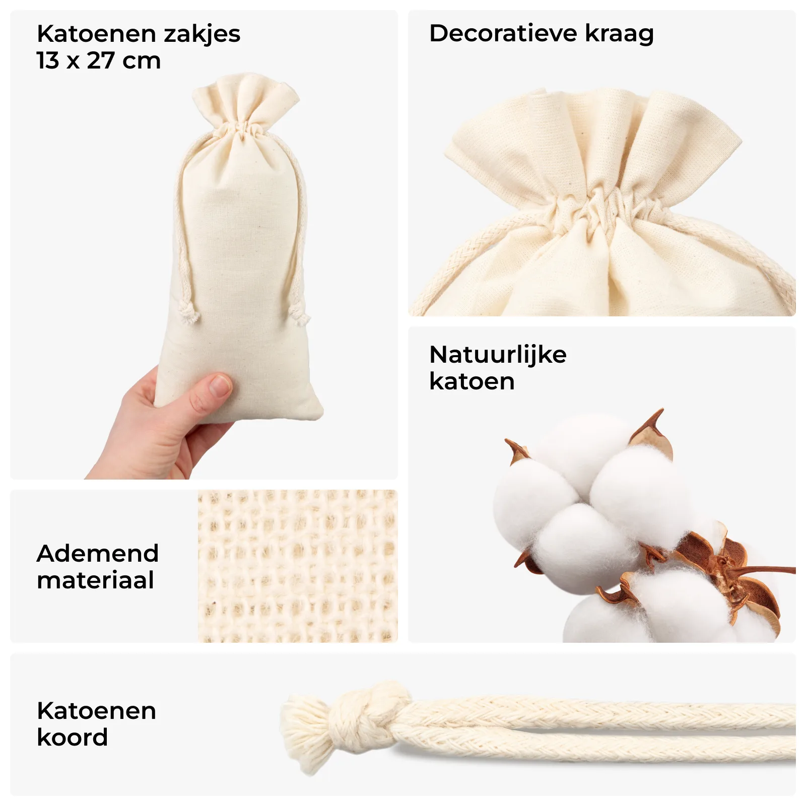 10 stuks Katoenen zakjes 13 x 27 cm - natuurlijk