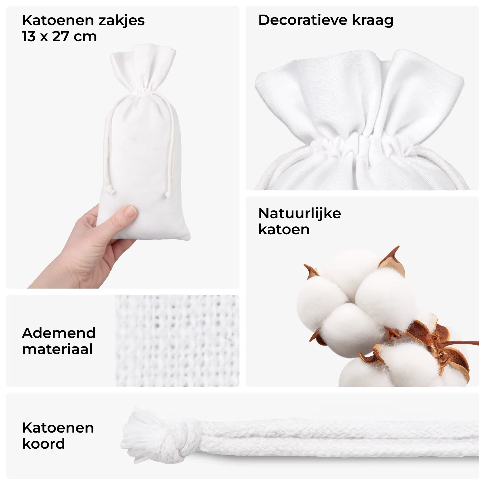10 stuks Katoenen zakjes 13 x 27 cm - wit