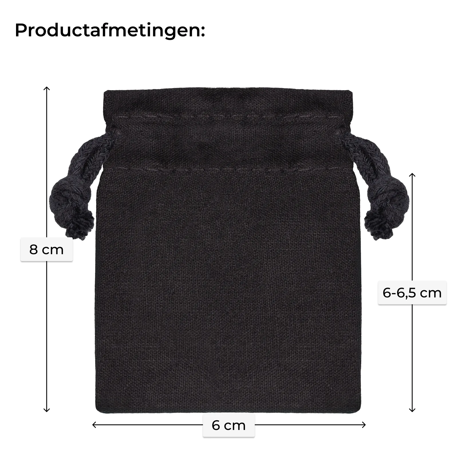 Kleine maar veelzijdige zakjes van elegant katoen in een zwart kleur in de maat 6 x 8 cm. Het gepresenteerde pakket bestaat uit 10 stuks, waardoor een eenmalige aanschaf van onze practische zakjes langer meegaat.