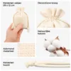 Hier kunt u mooie, herbruikbare zakjes kopen, genaaid van 100% katoen in natuurlijke kleur. Gebruik ze zoals u wilt - als bedankje voor uw gasten (rustieke of boho tafeldecoratie), productverpakking of een klein cadeautasje voor geschenken. Kleine zakjes van zuiver katoen zijn ook perfecte juwelenverpakkingen.