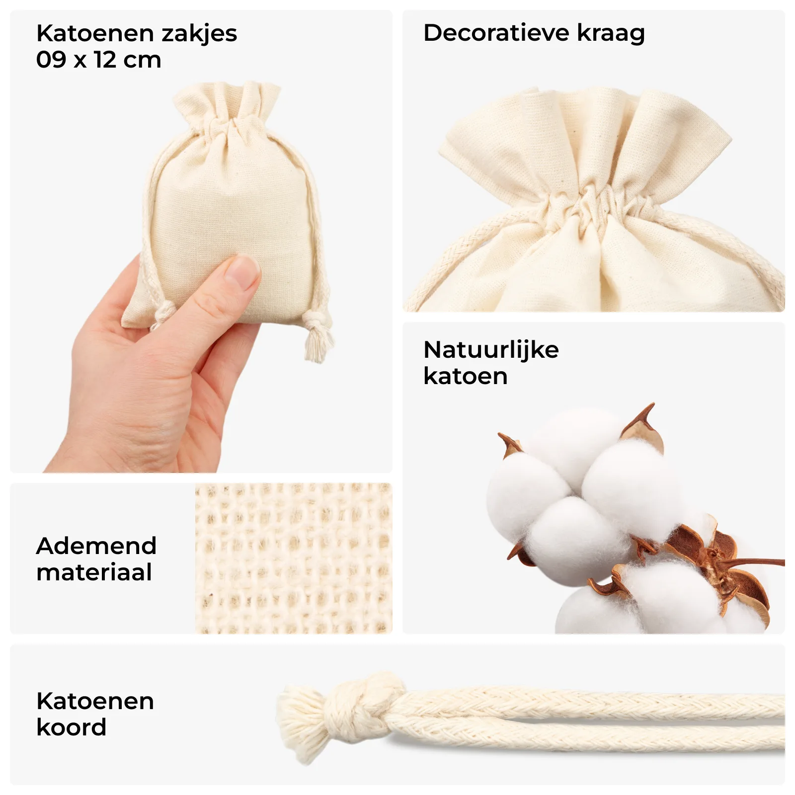 10 stuks Katoenen zakjes 9 x 12 cm - natuurlijk
