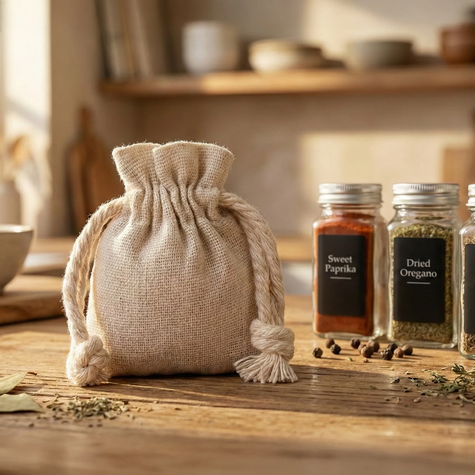 De zakjes zijn gemaakt van een mix van katoen en polyester. Deze stof geeft de uitstraling van linnen, maar is sterker en minder kreukgevoelig. Het materiaal is ademend en prettig in gebruik, met een natuurlijke beige tint en zichtbare structuur. Zo passen de linnenlook zakjes goed bij boho-, eco- en rustieke verpakkingsconcepten. Het dubbele katoenen koord met decoratieve vlecht zorgt voor een nette en betrouwbare sluiting.