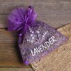 Lavendel wordt veel gebruikt in aromatherapie vanwege de kalmerende eigenschappen. Het leggen van gedroogde lavendel onder het kussen verbetert de slaapkwaliteit. De lavendelzakjes houden ook motten en muggen op afstand, ze zijn ook geschikt voor in kasten. Als je een kruiden- of zadenwinkel hebt, raden we een bedrukt organza zakje met LAVENDEL aan als cadeau of verpakking. Handgemaakte zakjes, variaties in uiterlijk mogelijk.