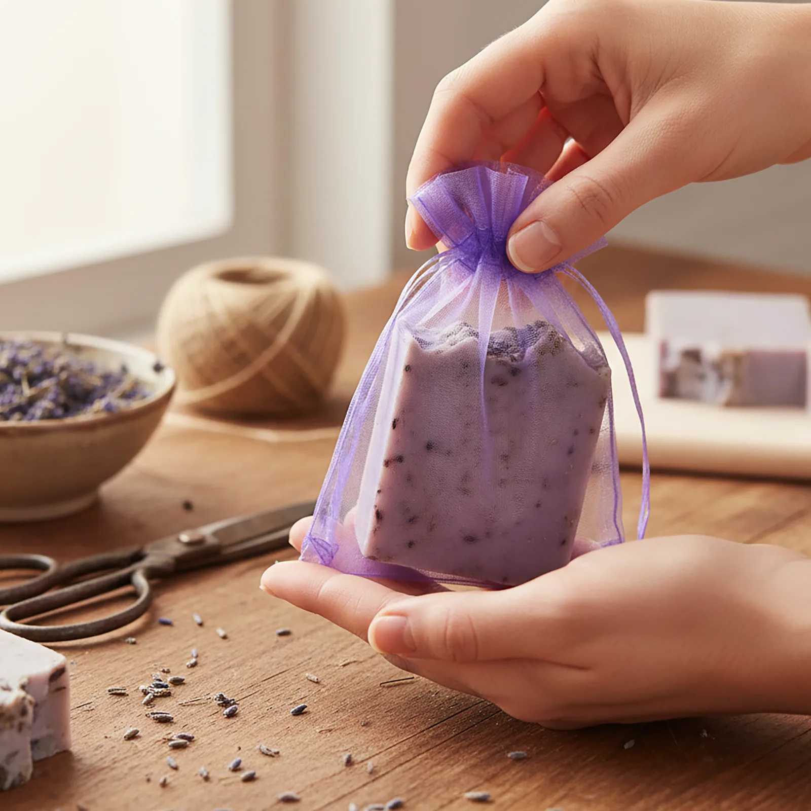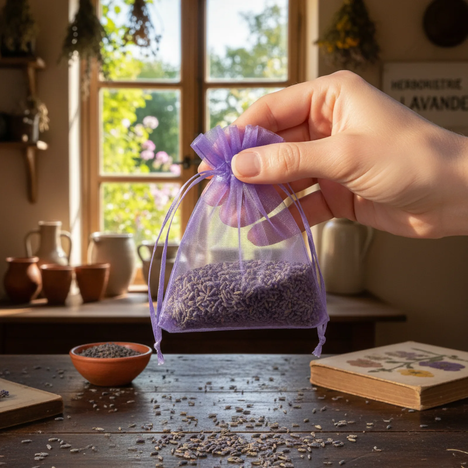 Een perfecte keuze voor bruiloften met lavendelthema of evenementen met een paars kleurenschema. Deze zakjes zijn ideaal als cadeauverpakking of om DIY geurzakhjes en natuurlijke vochtvreters voor thuis te maken.