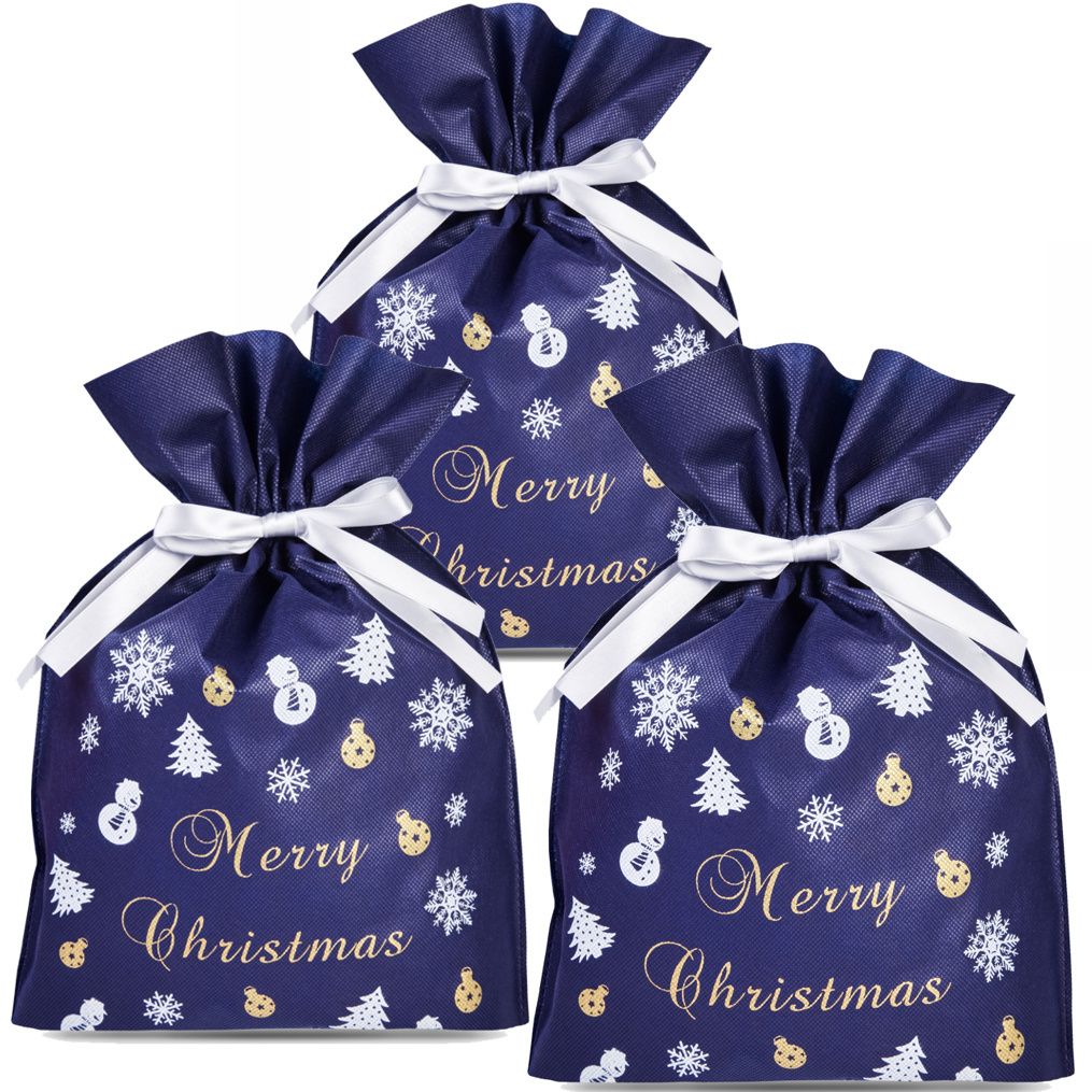 Set van 3 kerstzakken van nonwoven met print - 20 x 30 cm cadeauverpakking voor de feestdagen