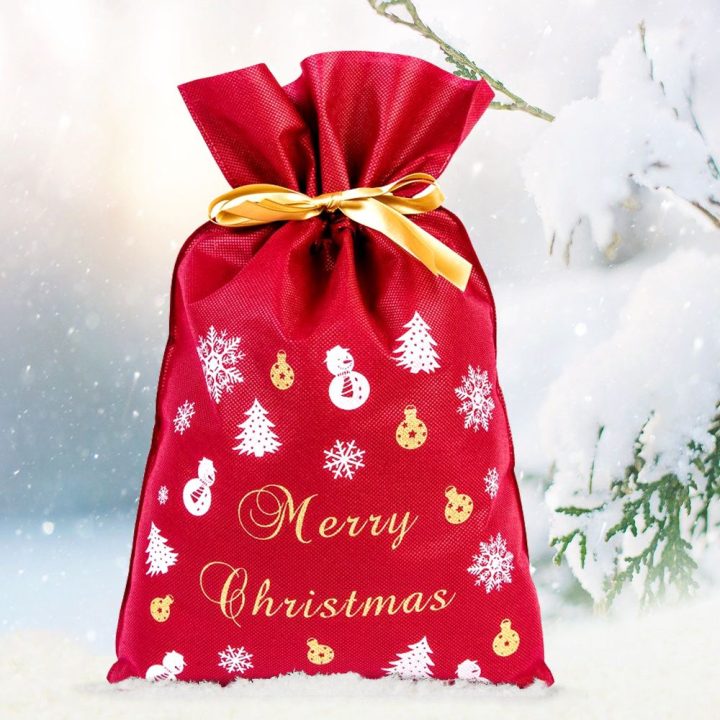 Kerstzakjes van nonwoven met opdruk - professionele presentatie voor uw kerstverpakking