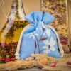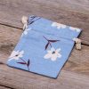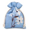3 stuks Zakjes à la linnen met print 12 x 15 cm - natuurlijk / blauwe bloemen
