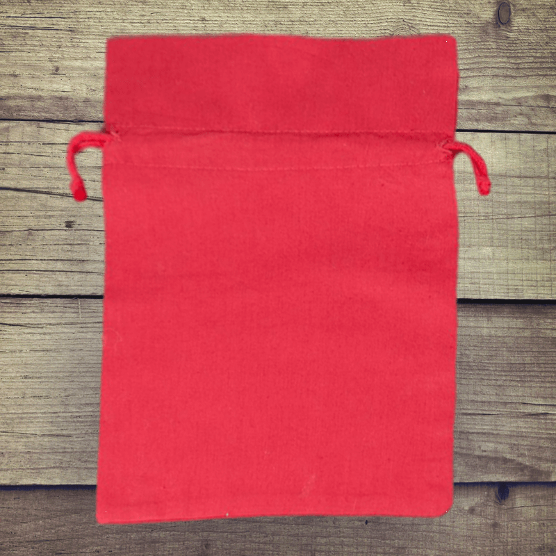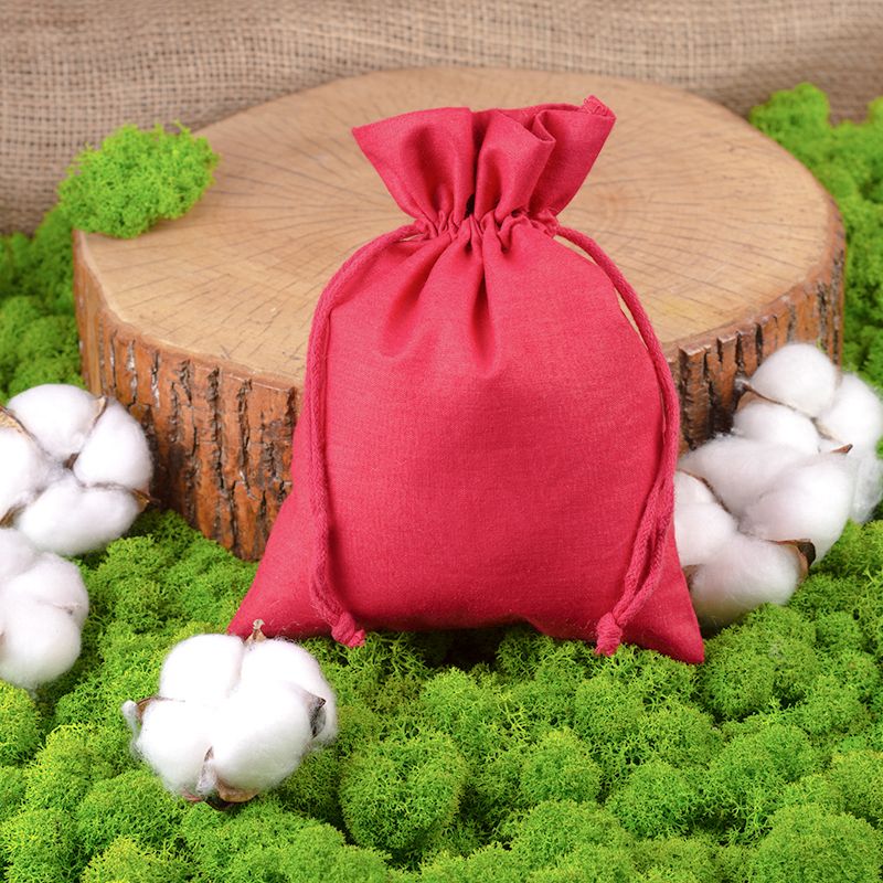 Een collectie van 5 stuks middelgrote katoenen zakjes in een formaat van 18 x 24 cm, en waarvan de rood kleur op elke plaats goed tot zijn recht komt. Deze set is zeer universeel - het biedt de mogelijkheid om de zakjes op verschillende manieren te gaan gebruiken.