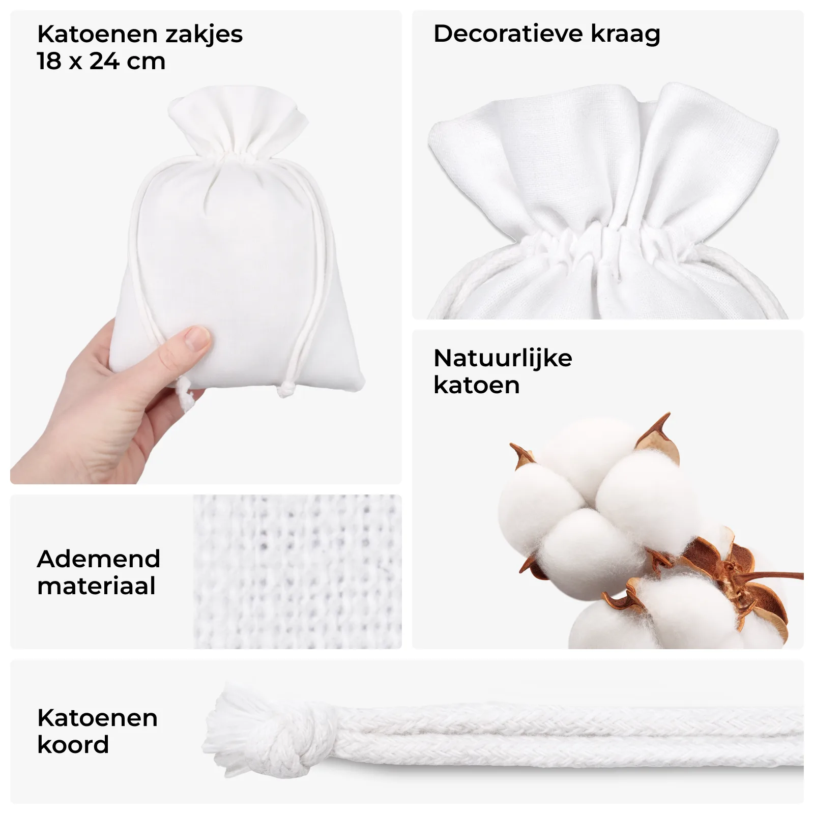 5 stuks Katoenen zakjes 18 x 24 cm - wit