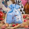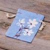 5 stuks Zakjes à la linnen met print 10 x 13 cm - natuurlijk / blauwe bloemen