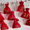 Adventskalender, 24 fluwelen zakjes 12 x 15 cm - rood