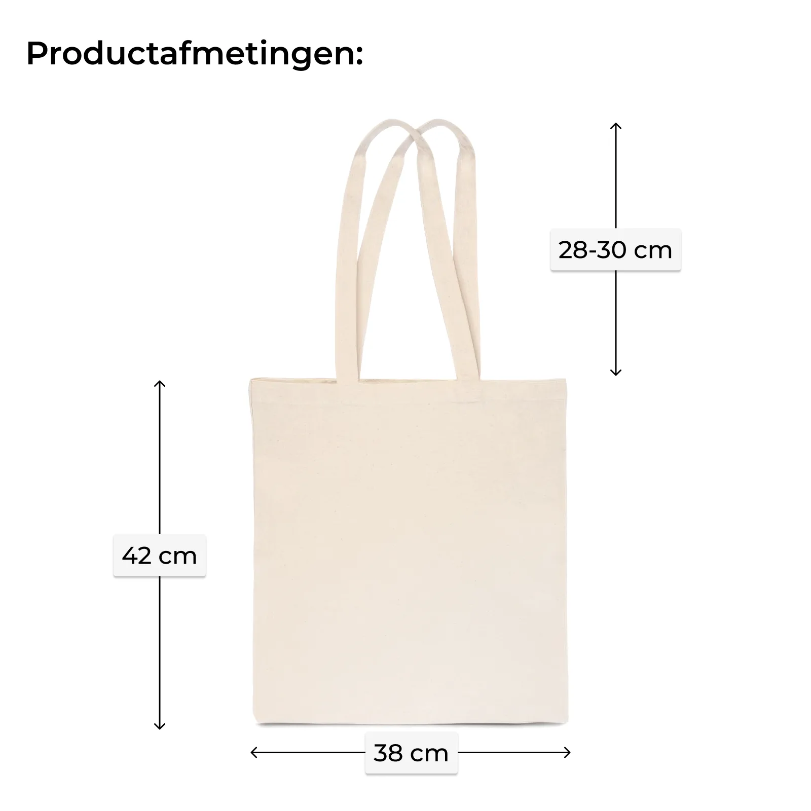 1 stuk Katoenen tas 38 x 42 cm met lange hengsels - natuurlijke kleur