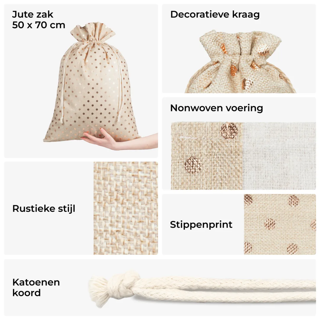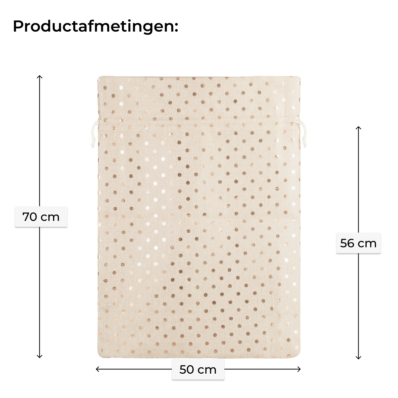 Grote jute zak 50 x 70 cm met gouden stippen - stijlvolle verpakking voor royale cadeaus