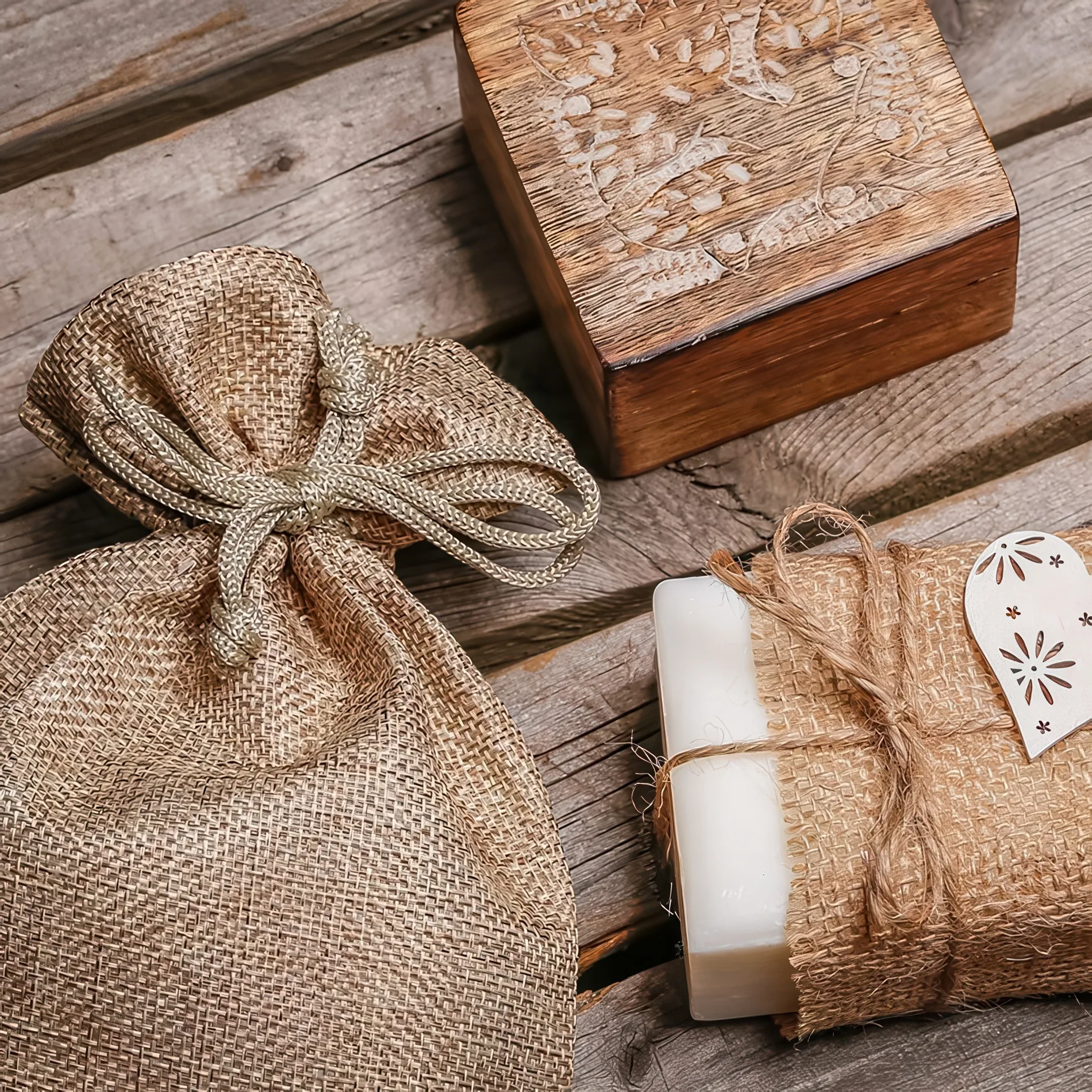 Jutezakjes gaan uitstekend samen met natuurlijke decoraties, biovoeding, natuurlijke geuren (bijv. als zakje voor lavendel) en andere ecologische producten, waardoor ze perfect bijeenkomsten van het type vintage en evenementen gestileerd op een dorpsklimaat en een Oud-Pools traditioneel feest benadrukken.