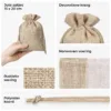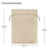 De zakjes zijn gemaakt van een polyesterstof met jute-look, ontworpen om de klassieke uitstraling van burlap na te bootsen. Het materiaal is stevig, vormvast en pluist niet, waardoor de zakjes ook bij veelvuldig gebruik netjes blijven. De natuurlijke beige tint past goed bij cadeaupakketten, cosmetica, handgemaakte artikelen en kleine producten.