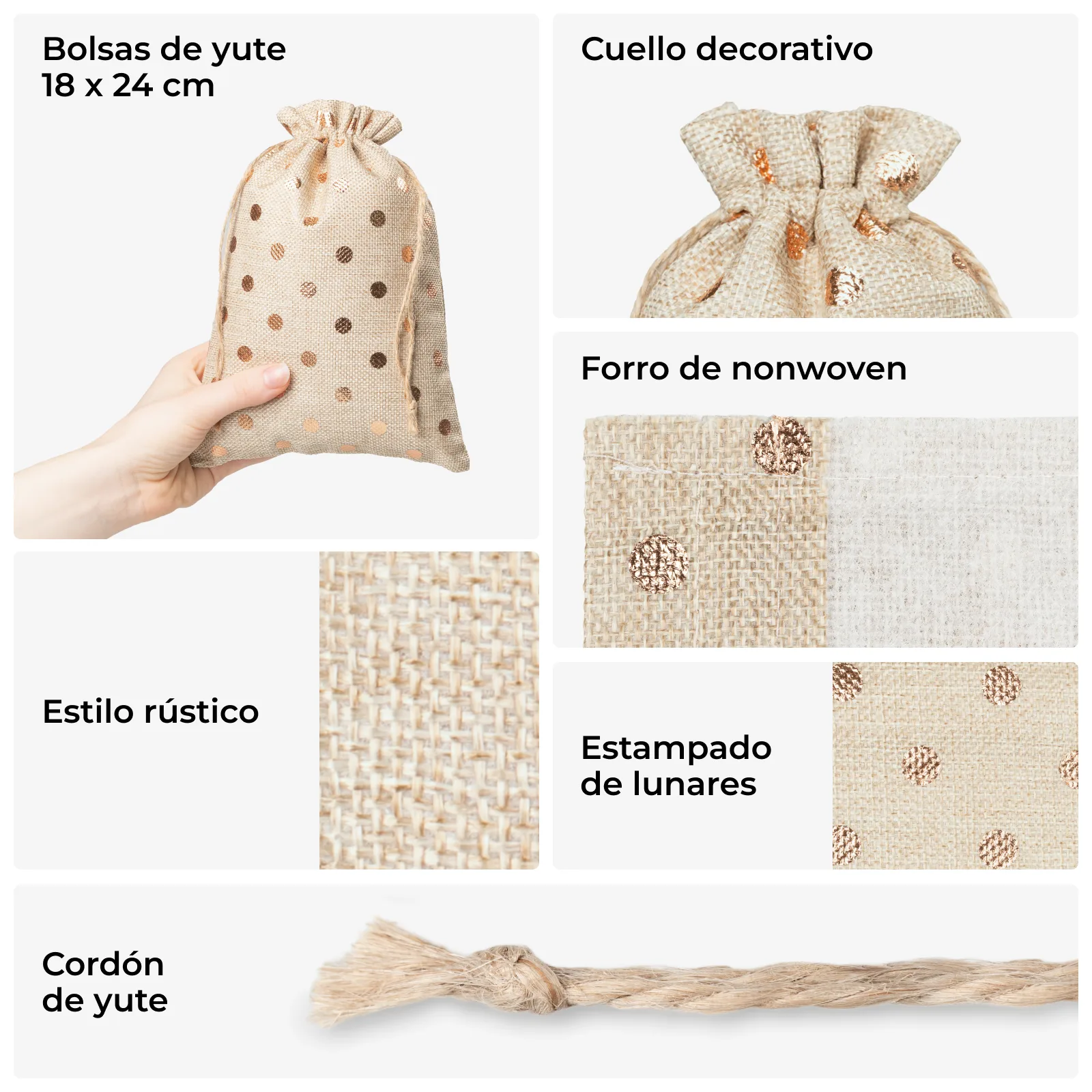 Elegante jute zakjes 18x24 cm met gouden stippen - geef je merk een luxe uitstraling