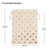 Maak indruk met deze stijlvolle jute zakjes met een gouden stippenprint en decoratieve kraag. Deze set van 5 zakjes combineert natuurlijke charme met verfijnd design - perfect voor bedrijven die aandacht besteden aan detail, presentatie én merkbeleving.Dankzij het handige dubbele trekkoord sluit je de zakjes moeiteloos en elegant. De binnenkant is ruim (bruikbare hoogte: 21 cm), waardoor ze ideaal zijn voor cosmeticasets, geurproducten, kleine kledingstukken of B2B-cadeaupakketten.Waarom kiezen voor deze jute zakjes?