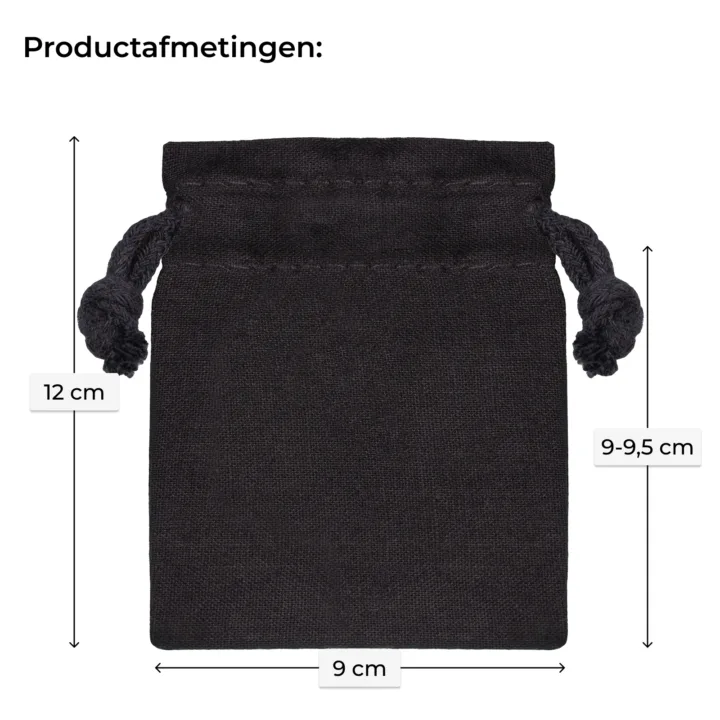 Hier koopt u elegante zakjes gemaakt van natuurlijke stof (100% katoen). U kunt de set van 10 katoenen zakjes in zwart gebruiken als stijlvolle verpakking voor juwelen, geschenken.