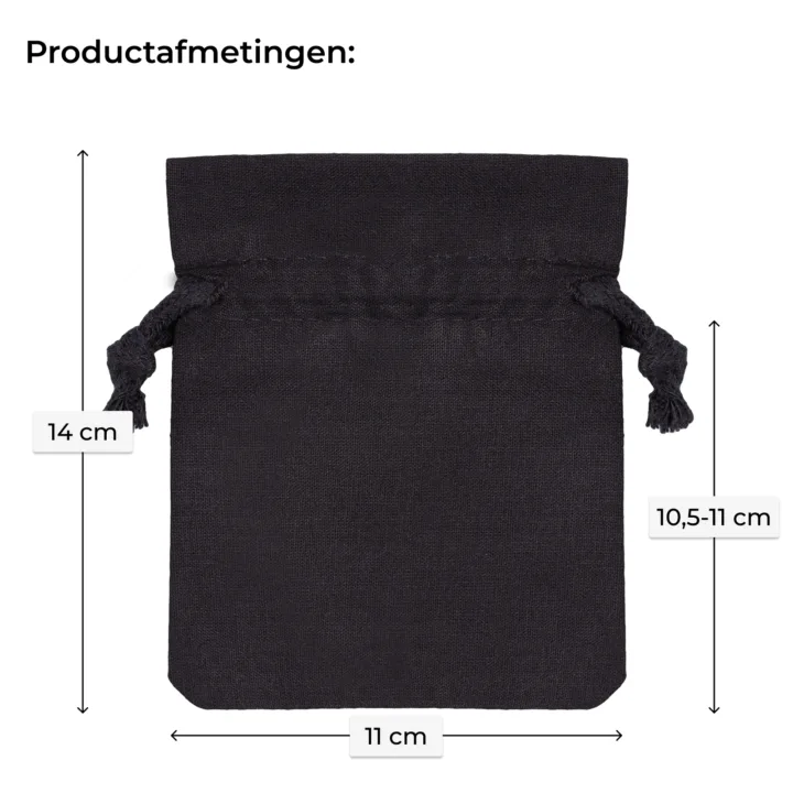 Kleine maar veelzijdige zakjes van elegant katoen in een zwart kleur in de maat 11 x 14 cm. Het gepresenteerde pakket bestaat uit 10 stuks, waardoor een eenmalige aanschaf van onze practische zakjes langer meegaat.