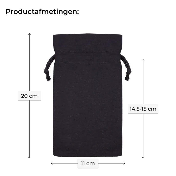 Kleine maar veelzijdige zakjes van elegant katoen in een zwart kleur in de maat 11 x 20 cm. Het gepresenteerde pakket bestaat uit 10 stuks, waardoor een eenmalige aanschaf van onze practische zakjes langer meegaat.