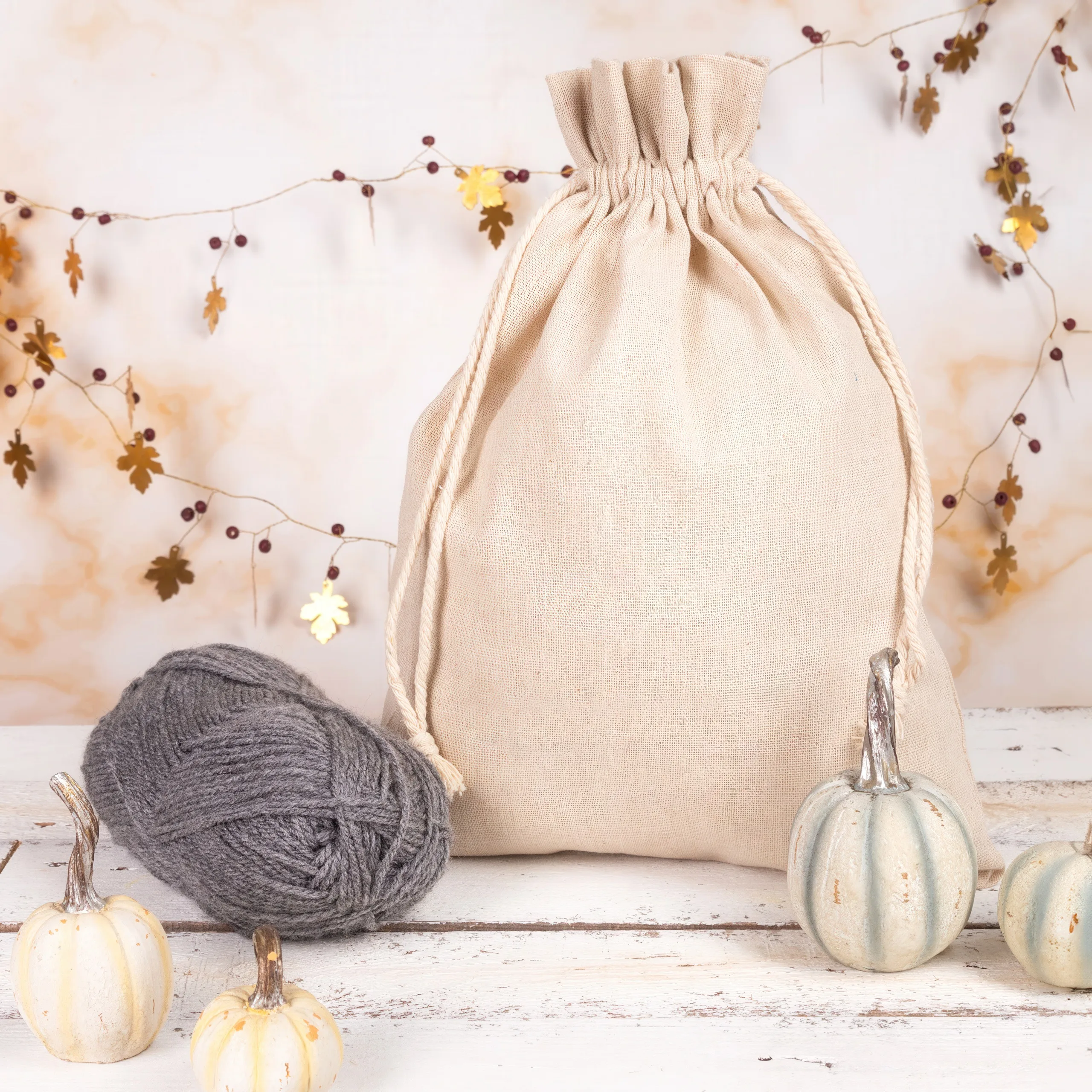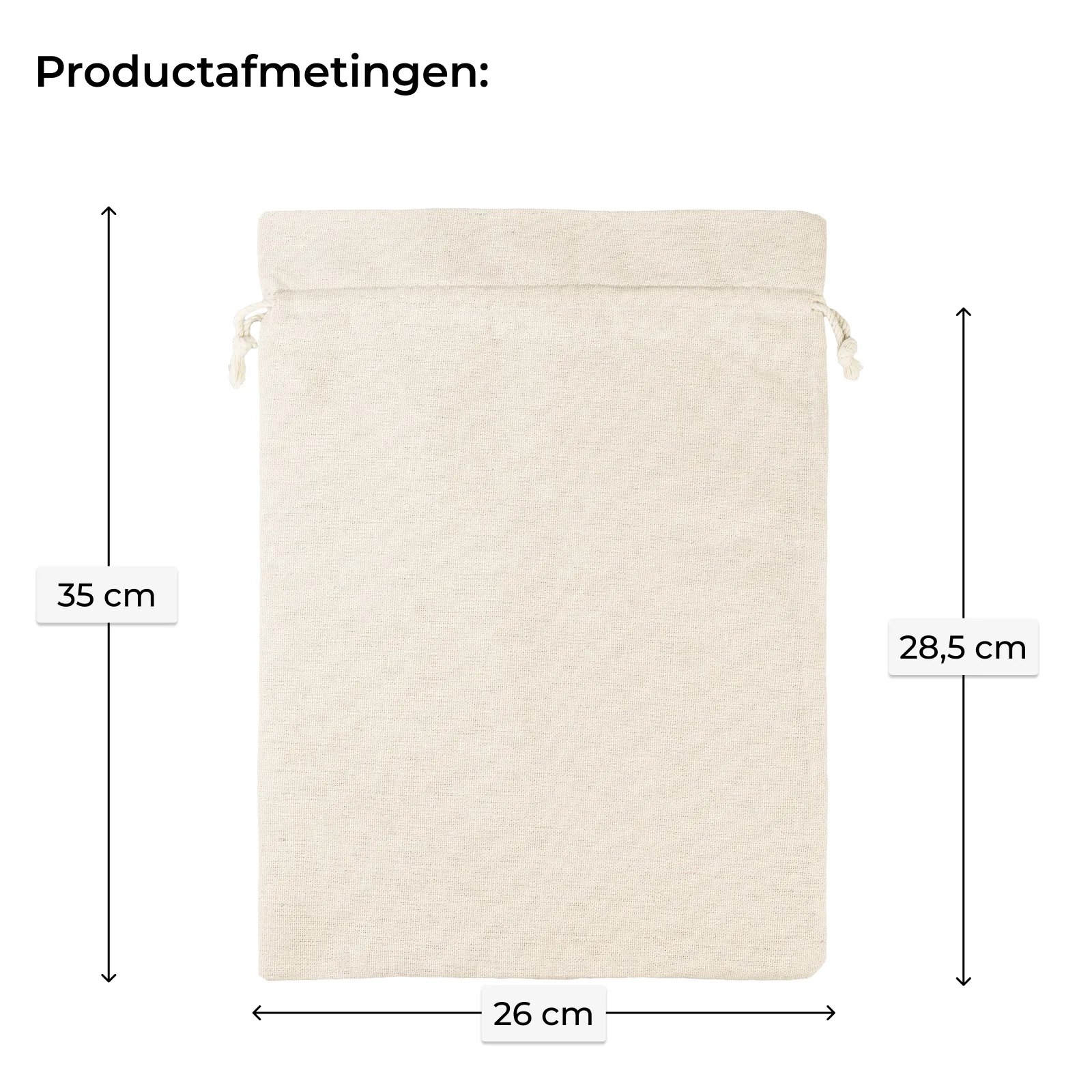 Ontdek onze veelzijdige grote stoffen zakken met dubbel katoenen trekkoord! De verpakking bevat 1 grote zak in naturelkleurig linnen met afmetingen van 26 x 35 cm.