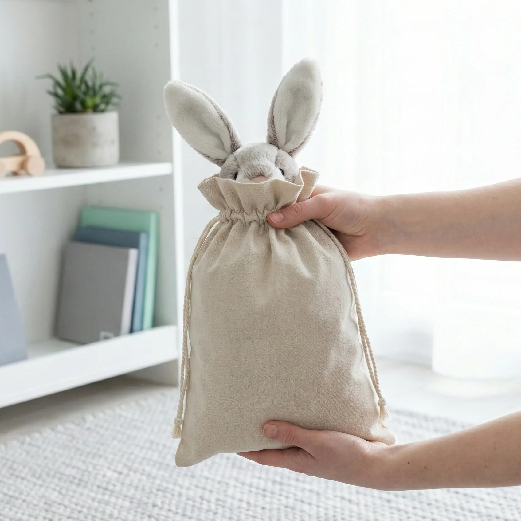 De hier gepresenteerde zak onderscheidt zich door een hoogwaardige afwerking (duurzame stof, sterke stiksels) en een origineel uiterlijk. De stof voelt aangenaam aan en zorgt voor een goede luchtcirculatie. Het is bovendien zeer duurzaam en bestand tegen schuren en kreuken. Hier bieden wij stoffen verpakkingen met katoen aan, die zowel qua structuur als qua materiaalkleur natuurlijk linnen imiteren. Door de toevoeging van synthetische vezels is dit echt een duurzame, herbruikbare verpakking!