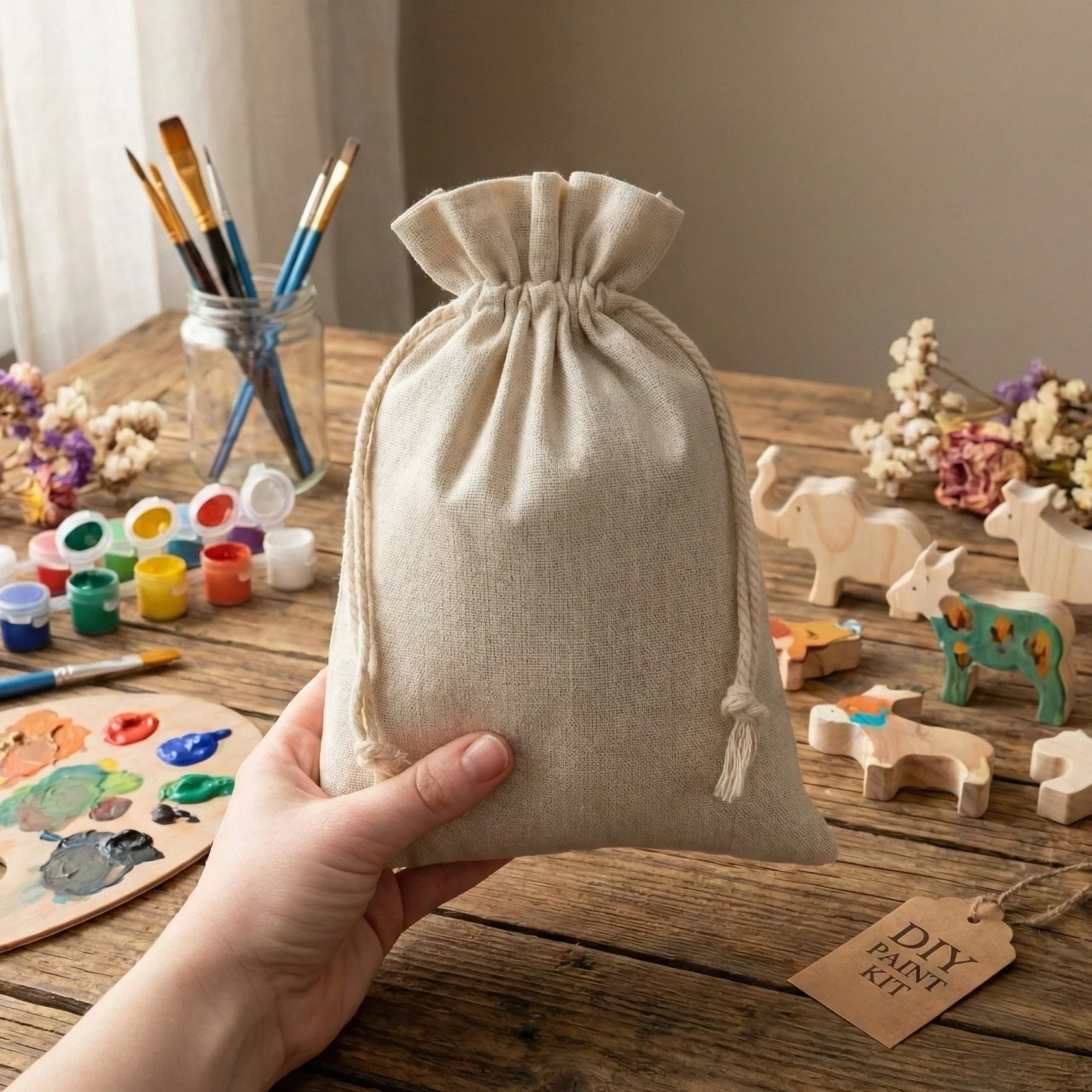 De hier gepresenteerde zakjes onderscheidt zich door een hoogwaardige afwerking (duurzame stof, sterke stiksels) en een origineel uiterlijk. De stof voelt aangenaam aan en zorgt voor een goede luchtcirculatie. Het is bovendien zeer duurzaam en bestand tegen schuren en kreuken. Hier bieden wij stoffen verpakkingen met katoen aan, die zowel qua structuur als qua materiaalkleur natuurlijk linnen imiteren. Door de toevoeging van synthetische vezels is dit echt een duurzame, herbruikbare verpakking!