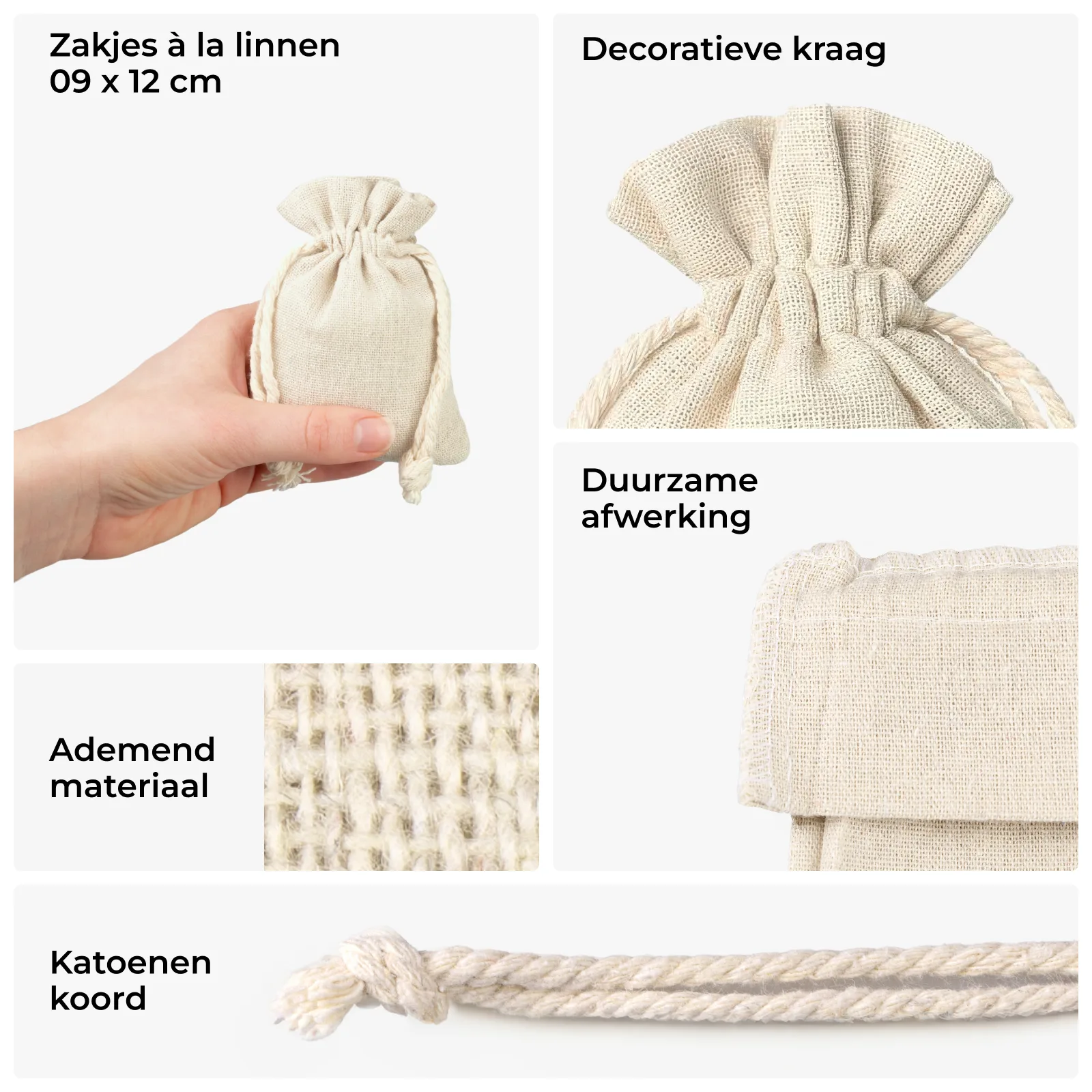 Ontdek onze duurzame en praktische stoffen zakjes à la linnen in een kleur van natuurlijk linnen. De hier voorgestelde zakjes meten 9 x 12 cm. De verpakking bevat een set van 10 universele zakjes.