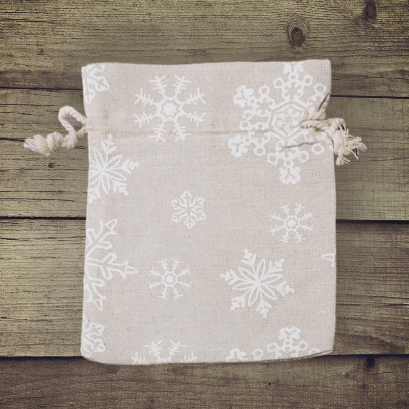 10 stuks Zakjes à la linnen met print 15 x 20 cm - natuurlijke kleur / sneeuw