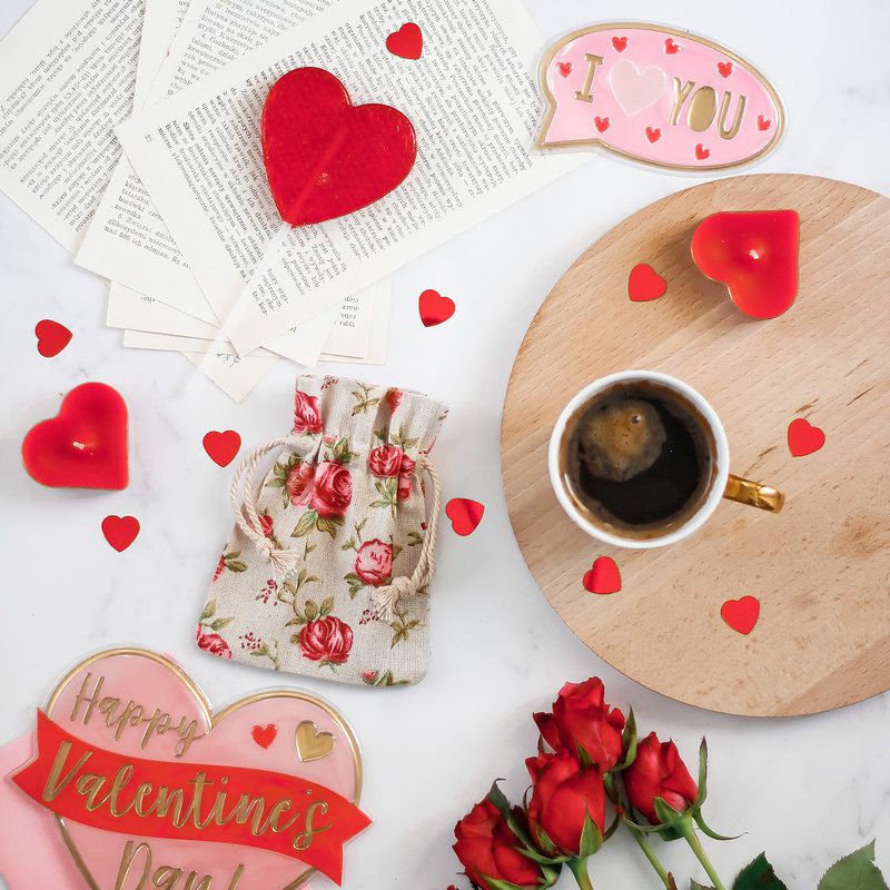 10 stuks Zakjes à la linnen met print 9 x 12 cm - natuurlijke kleur / rozen