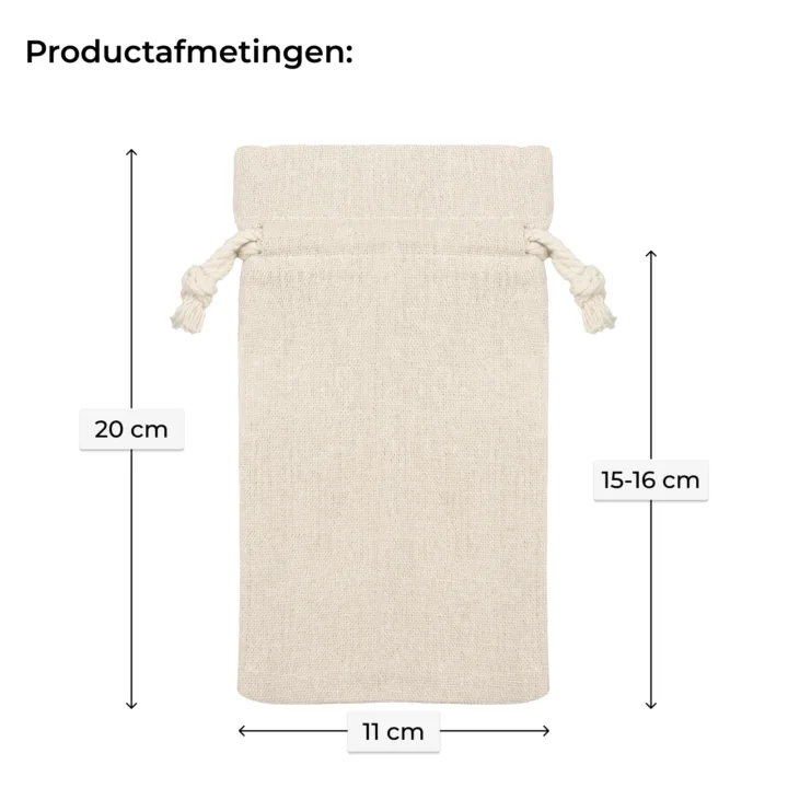 De hier gepresenteerde zakjes onderscheidt zich door een hoogwaardige afwerking (duurzame stof, sterke stiksels) en een origineel uiterlijk. De stof voelt aangenaam aan en zorgt voor een goede luchtcirculatie. Het is bovendien zeer duurzaam en bestand tegen schuren en kreuken. Hier bieden wij stoffen verpakkingen met katoen aan, die zowel qua structuur als qua materiaalkleur natuurlijk linnen imiteren. Door de toevoeging van synthetische vezels is dit echt een duurzame, herbruikbare verpakking!