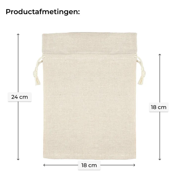 De hier gepresenteerde zakjes onderscheidt zich door een hoogwaardige afwerking (duurzame stof, sterke stiksels) en een origineel uiterlijk. De stof voelt aangenaam aan en zorgt voor een goede luchtcirculatie. Het is bovendien zeer duurzaam en bestand tegen schuren en kreuken. Hier bieden wij stoffen verpakkingen met katoen aan, die zowel qua structuur als qua materiaalkleur natuurlijk linnen imiteren. Door de toevoeging van synthetische vezels is dit echt een duurzame, herbruikbare verpakking!