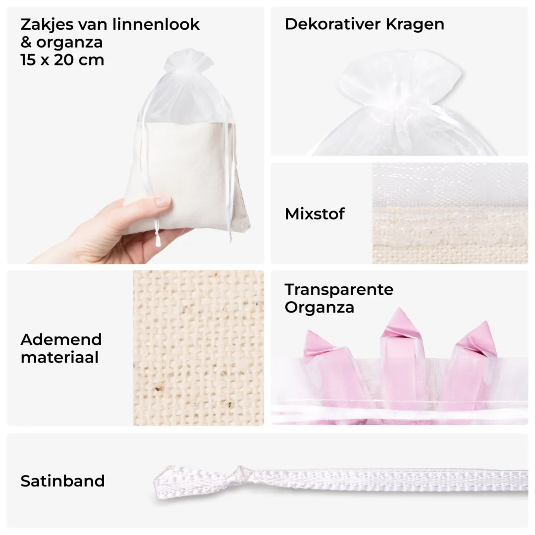Zakjes van linnenlook met organza 15x20 cm - stijlvol, ademend en multifunctioneel