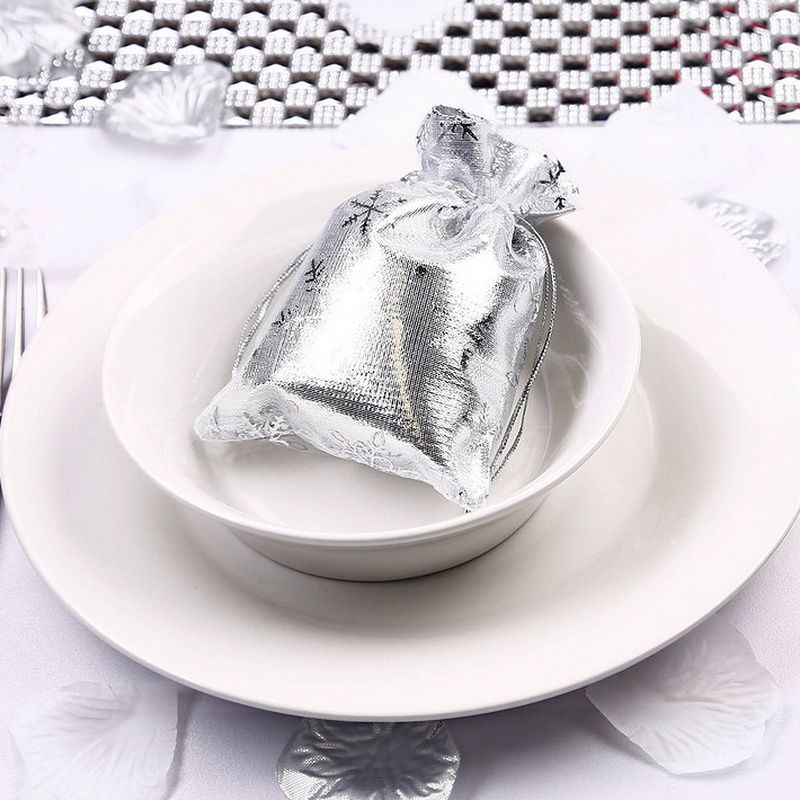 De metaalachtige zakjes worden heel vaak op huwelijksfeesten gebruikt als symbolische bedanking aan de gasten voor hun komst en bevatten dan bijv. iets zoets of een kort versje voor de gelegenheid. Het zakje kan eveneens gevuld worden met aromatische bloemblaadjes - zo'n cadeau vult perfect het beeld van het huwelijksfeest in de tuin aan. Er zijn nog veel meer mogelijkheden, alles wat men zich maar kan verbeelden, is mogelijk.
