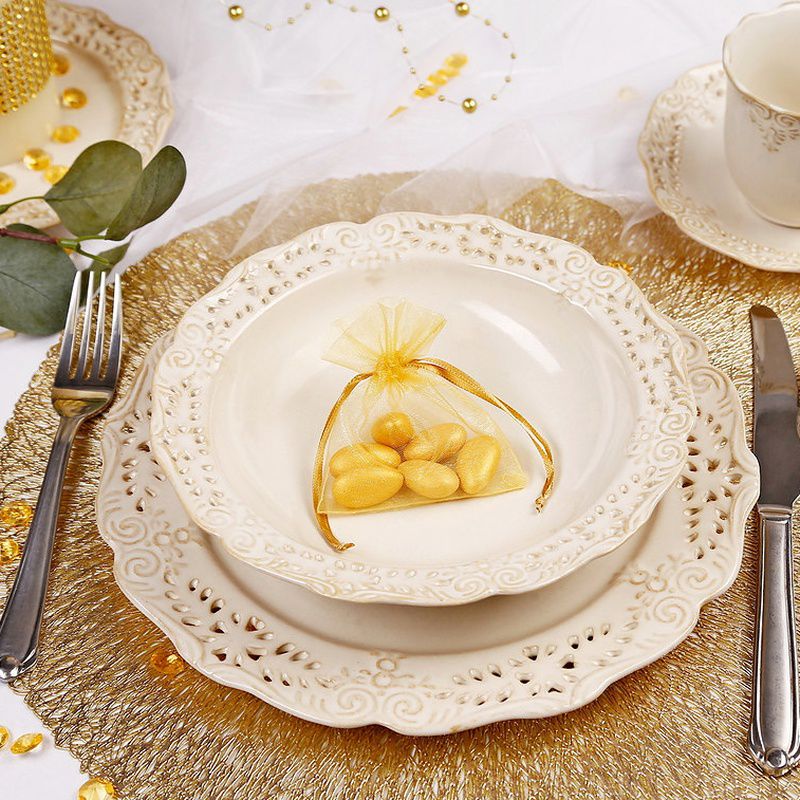 Een praktische set van kleine organzazakjes met afmetingen 10 x 13 cm . Het pakket bevat 25 stuks in goud kleur, waardoor het veel ruimte voor kleine voorwerpen garandeert. We kunnen eveneens bedrukte zakjes vervaardigen waarbij jouw logo rechtstreeks op het materiaal komt - je hoeft slechts contact met ons op te nemen.