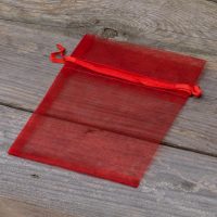 Een praktisch pakket van kleine organzazakjes in de kleur rood. De afmetingen van eenenkel zakje zijn 11 x 14 cm terwijl de hele set bestaat uit 25 stuks. Zo'n hoeveelheid garandeert dat er elke collectie in opgeborgen kan worden.