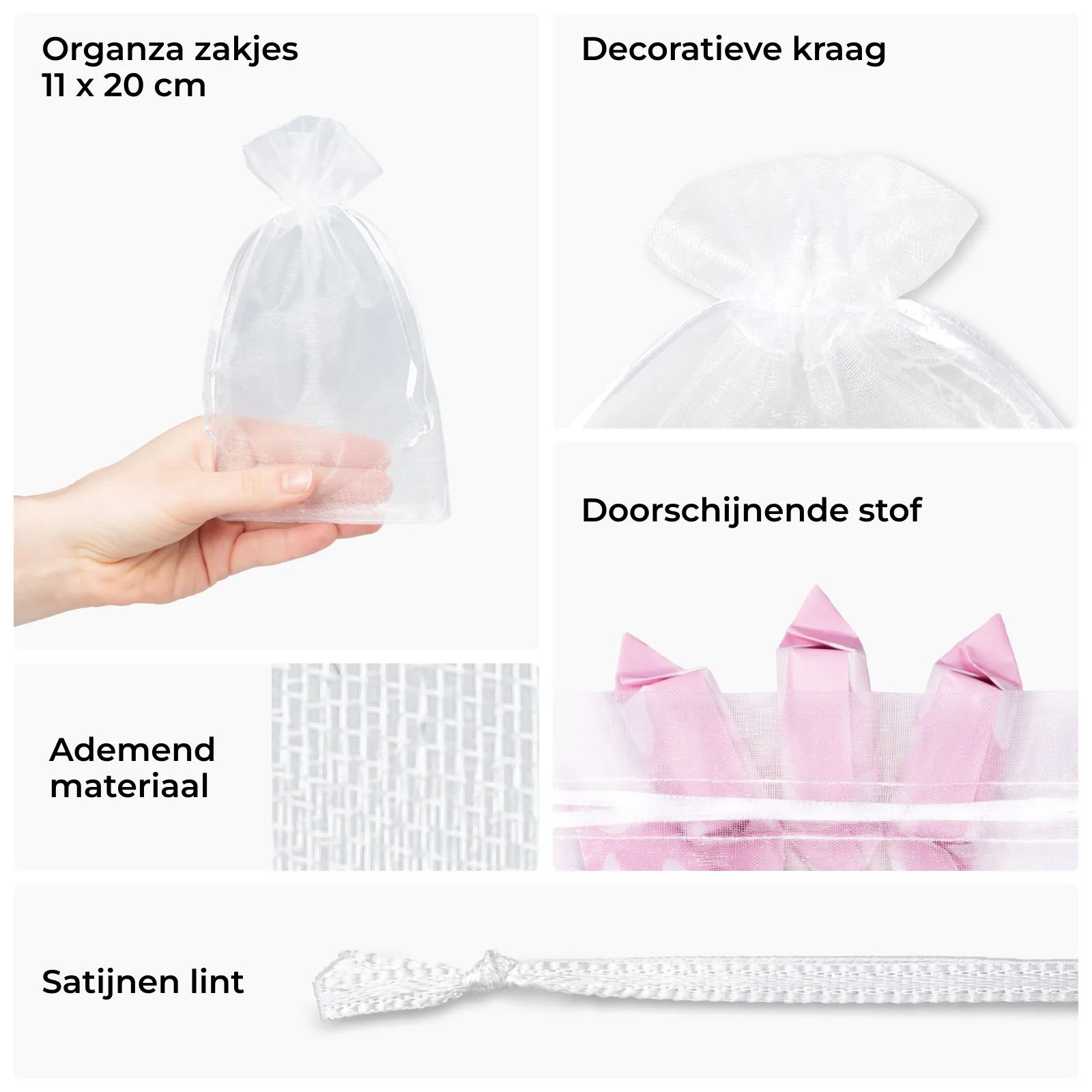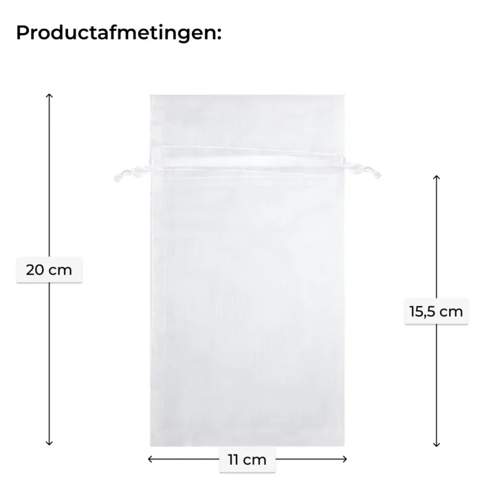 25 stuks Organza zakjes 11 x 20 cm - wit