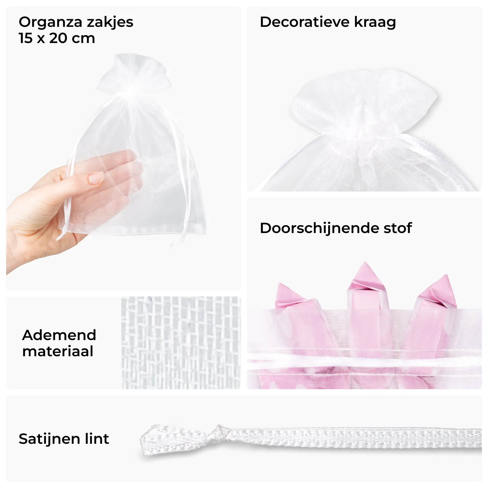 10 stuks Organza zakjes 15 x 20 cm - wit