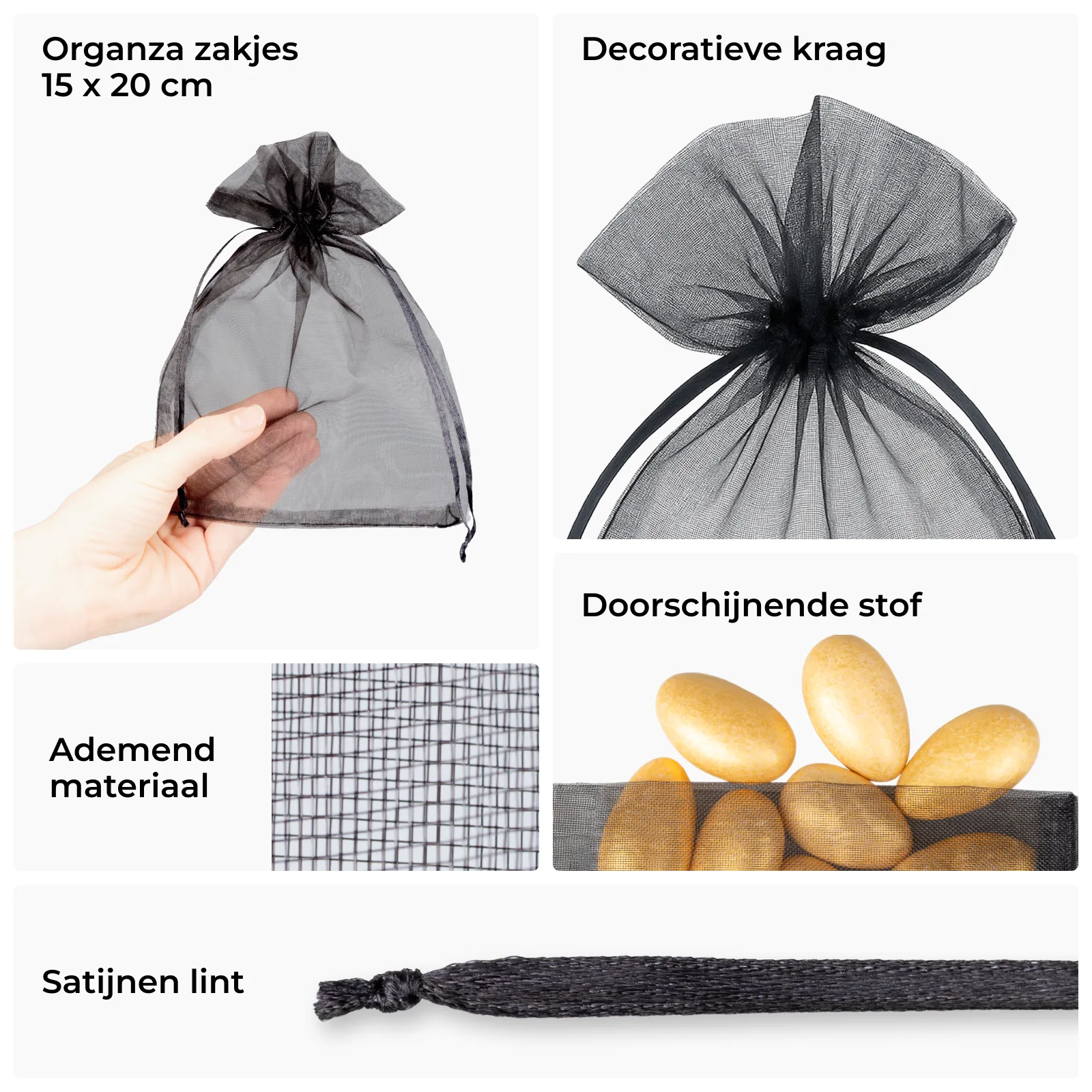 10 stuks Organza zakjes 15 x 20 cm - zwart