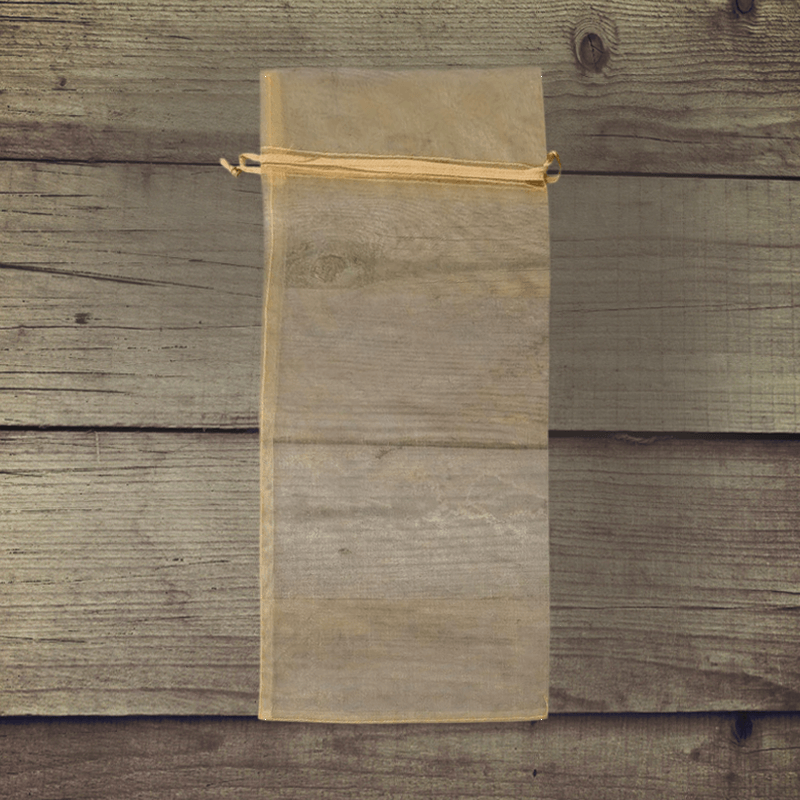Een set van 10 stuks middelgrote organzazakjes in de kleur goud met afmetingen 16 x 37 cm. Ze worden ook tulen zakjes genoemd of zakjes van tule.
