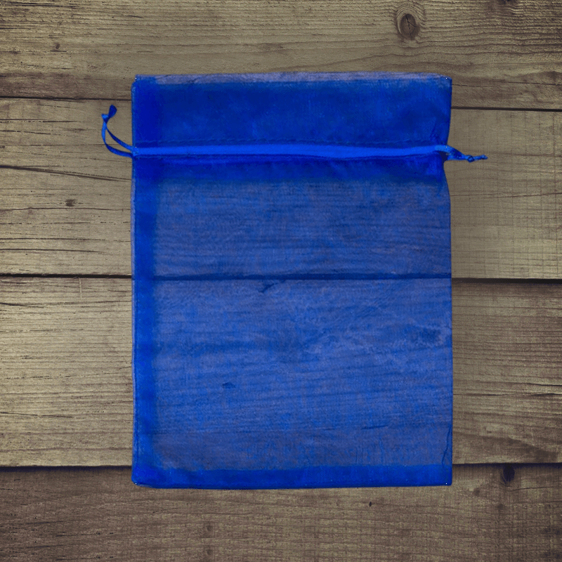 Een set van 10 stuks middelgrote organzazakjes in de kleur blauw met afmetingen 18 x 24 cm. Ze worden ook tulen zakjes genoemd of zakjes van tule.