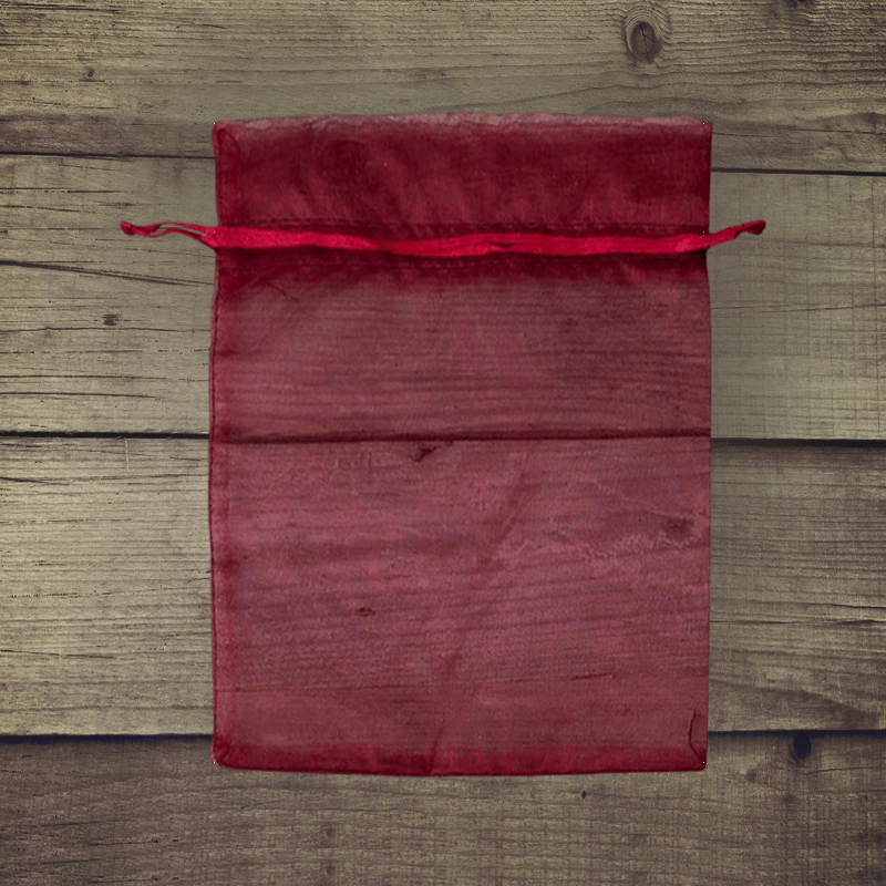 Een set van 10 stuks middelgrote organzazakjes in de kleur bordeaux met afmetingen 18 x 24 cm. Ze worden ook tulen zakjes genoemd of zakjes van tule.